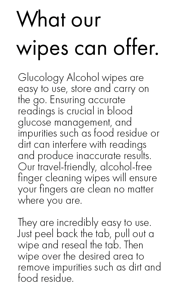 - Infused with Chlorhexidine Gluconate 2% solution to effectively clean your skin without interfering with blood glucose monitoring reading