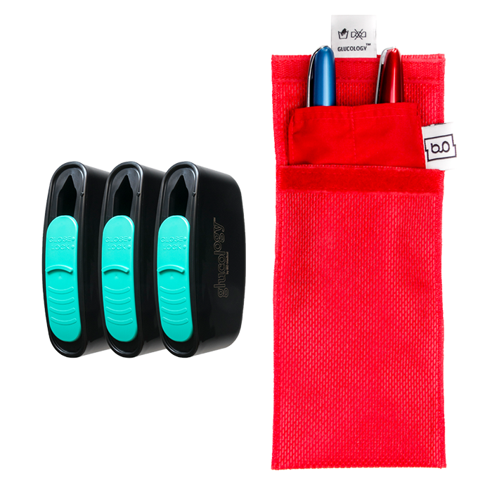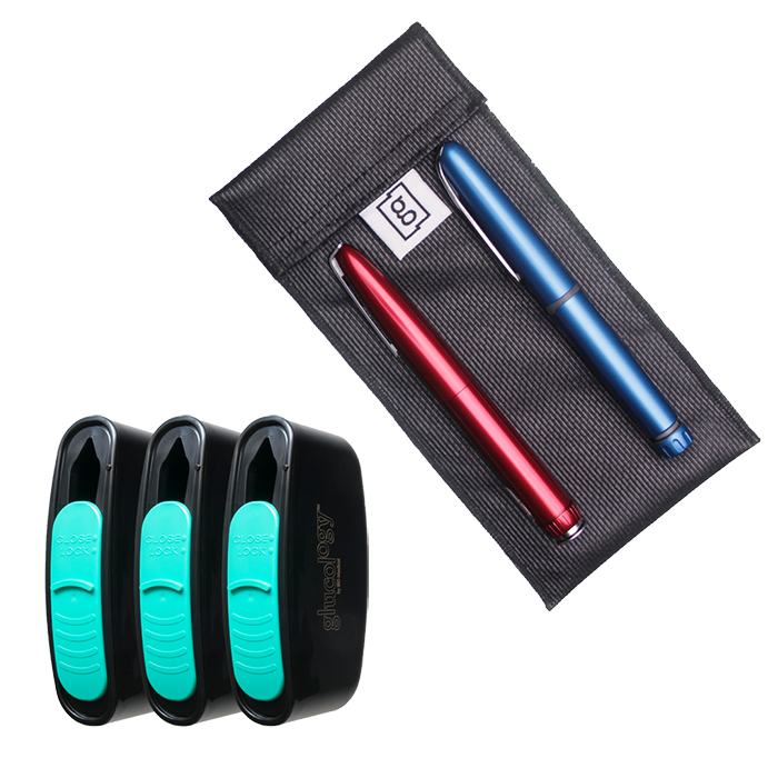 Glucology® Pen Needle Pocket Containers are perfect for condition management on the go. Each Container can hold 25 needle-tips PLUS used lancets AND test strips. The compact stylish design means they fit easily into a trouser pocket or clutch.