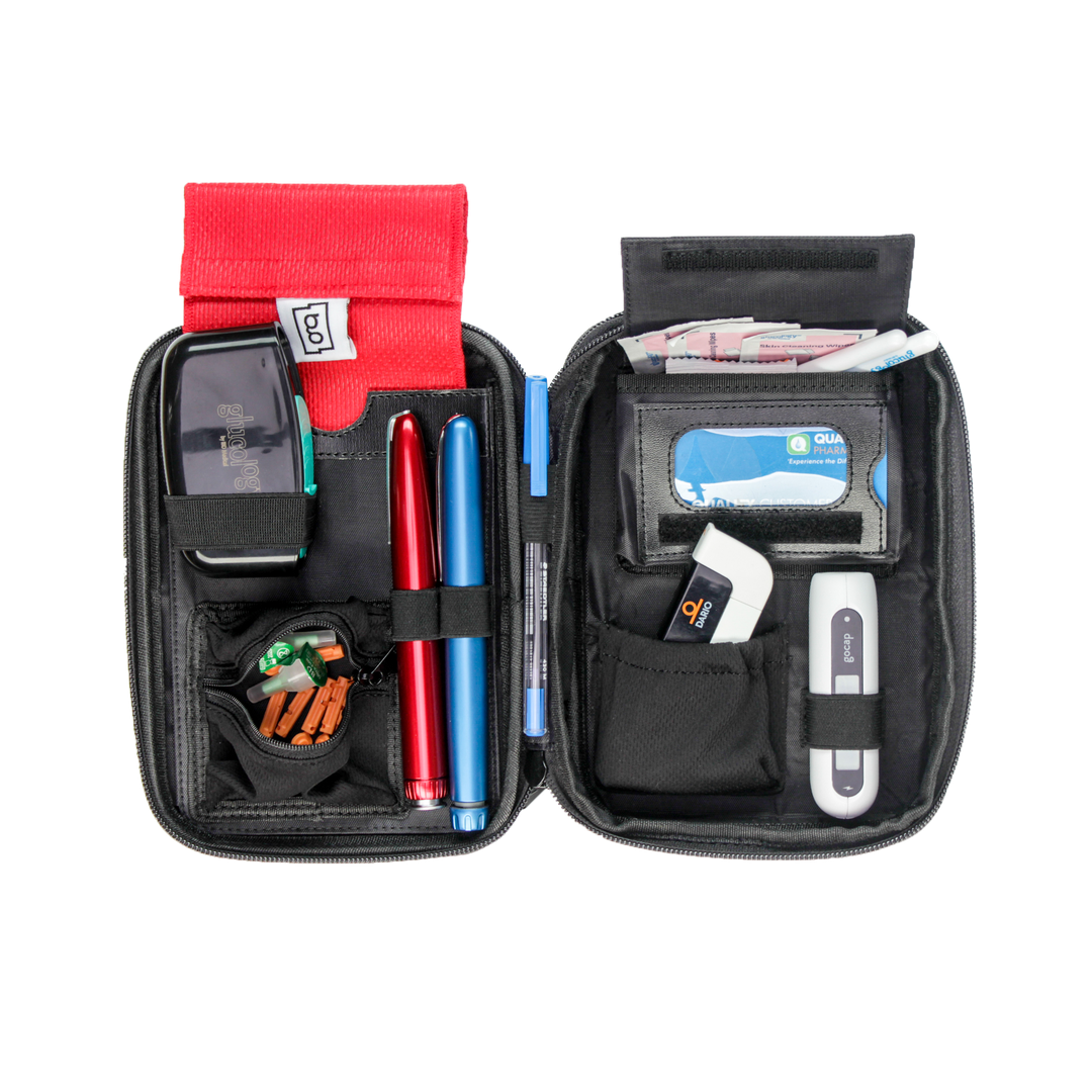 Our diabetic Glucology® organiser case features a protective hardshell cover. Shields all your delicate accessories from impact especially while you are on the move.